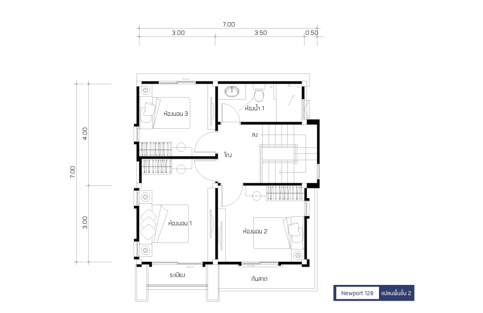 3 ห้องนอน 2 ห้องน้ำ 1 ที่จอดรถ