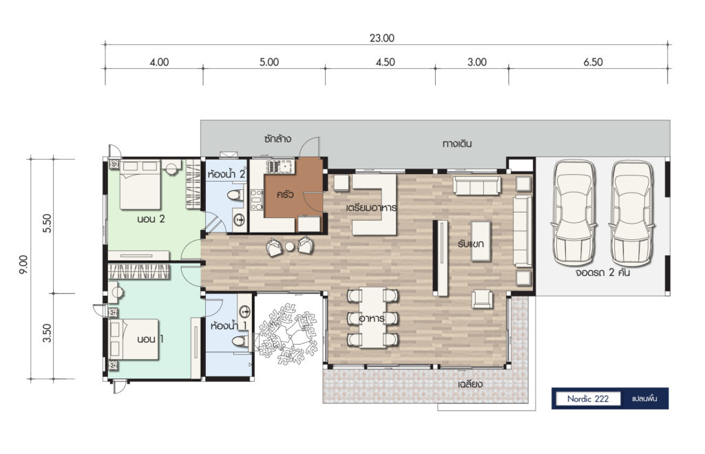 2 ห้องนอน 2 ห้องน้ำ 2 ที่จอดรถ