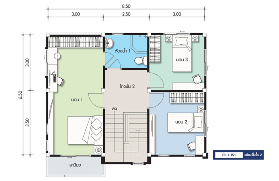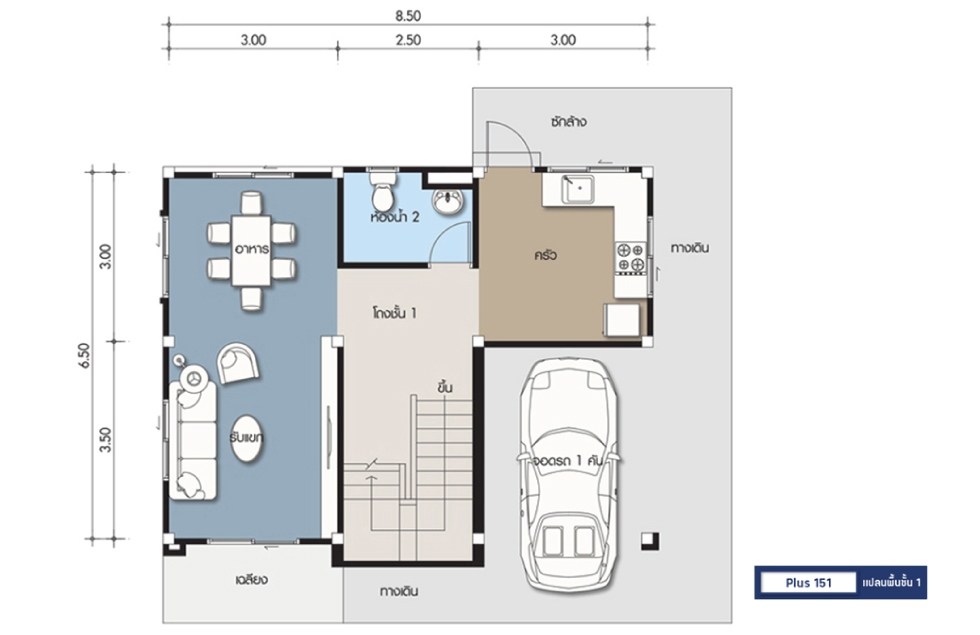 พื้นที่ : 151 ตร.ม. ขนาดที่ดิน : 60 ตร.วา