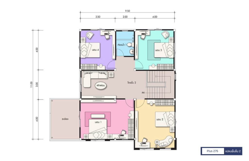 พื้นที่ : 275 ตร.ม. ขนาดที่ดิน : 68 ตร.วา