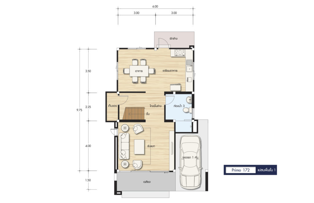พื้นที่ : 172 ตร.ม. ขนาดที่ดิน : 47 ตร.วา