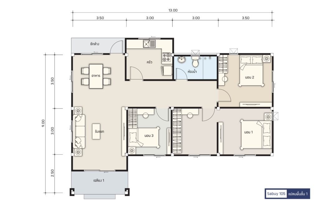 | ห้องนอน / ห้องน้ำ | 3 / 1 |