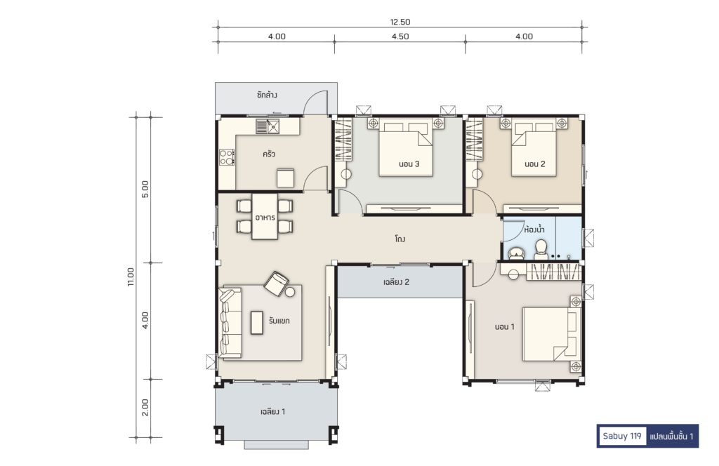 พื้นที่ : 119 ตร.ม. ขนาดที่ดิน : 64 ตร.วา
