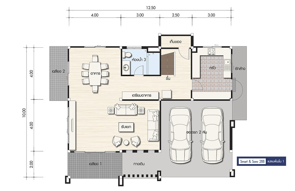 พื้นที่ : 288 ตร.ม. ขนาดที่ดิน : 68 ตร.วา