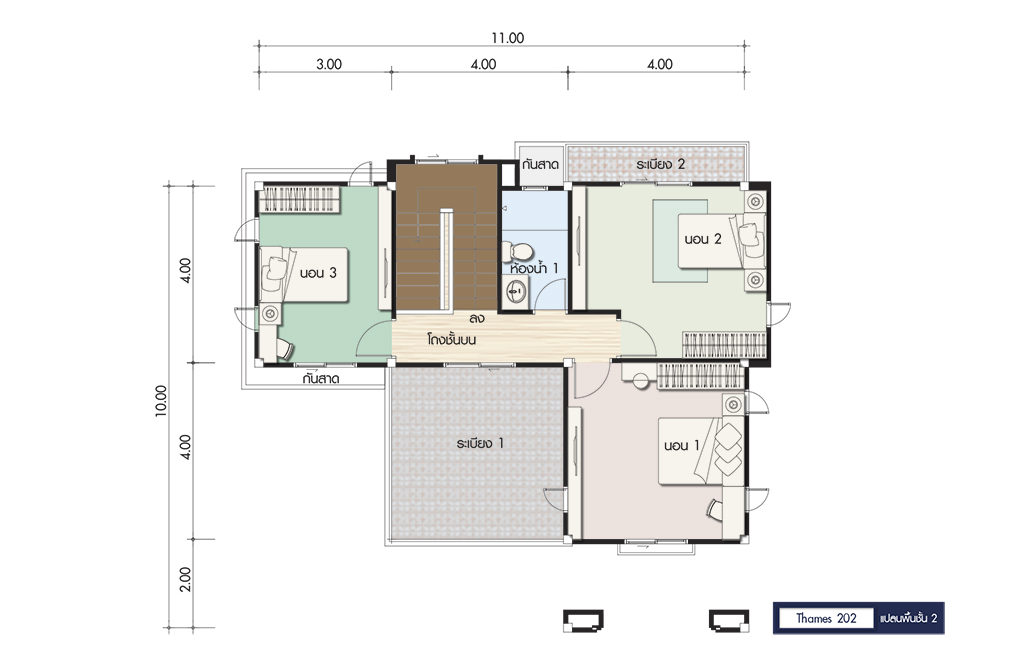 | ขนาดเส้นรอบบ้าน | 11.00x10.00 |