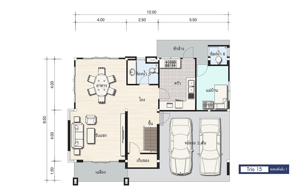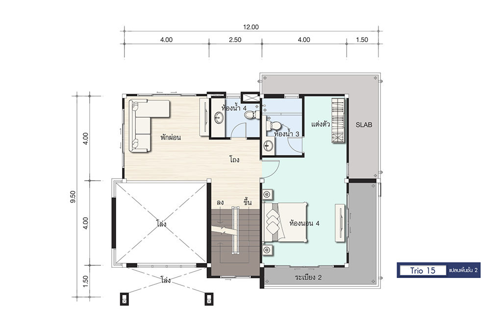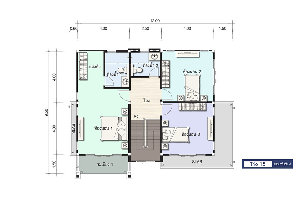 ขนาดเส้นรอบบ้าน12.00x9.50