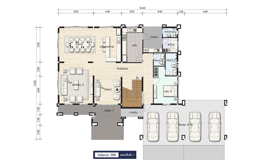 5 ห้องนอน 6 ห้องน้ำ 4 ที่จอดรถ