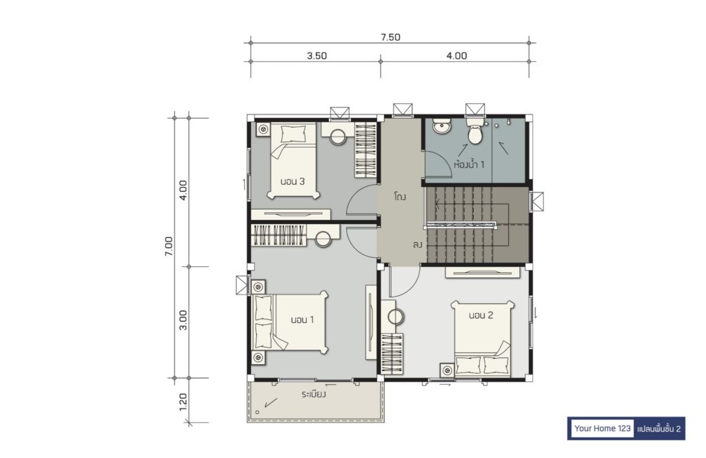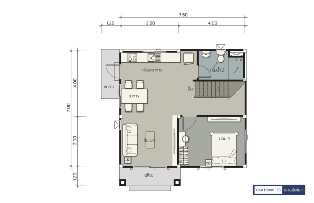 พื้นที่ : 123 ตร.ม. ขนาดที่ดิน : 36 ตร.วา