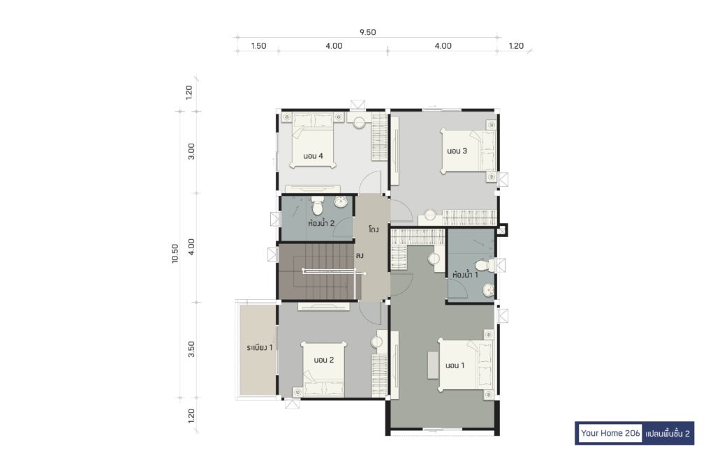 พื้นที่ : 206 ตร.ม. ขนาดที่ดิน : 54 ตร.วา