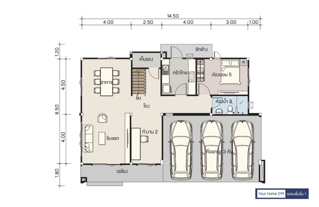 พื้นที่ : 299 ตร.ม. ขนาดที่ดิน : 68 ตร.วา