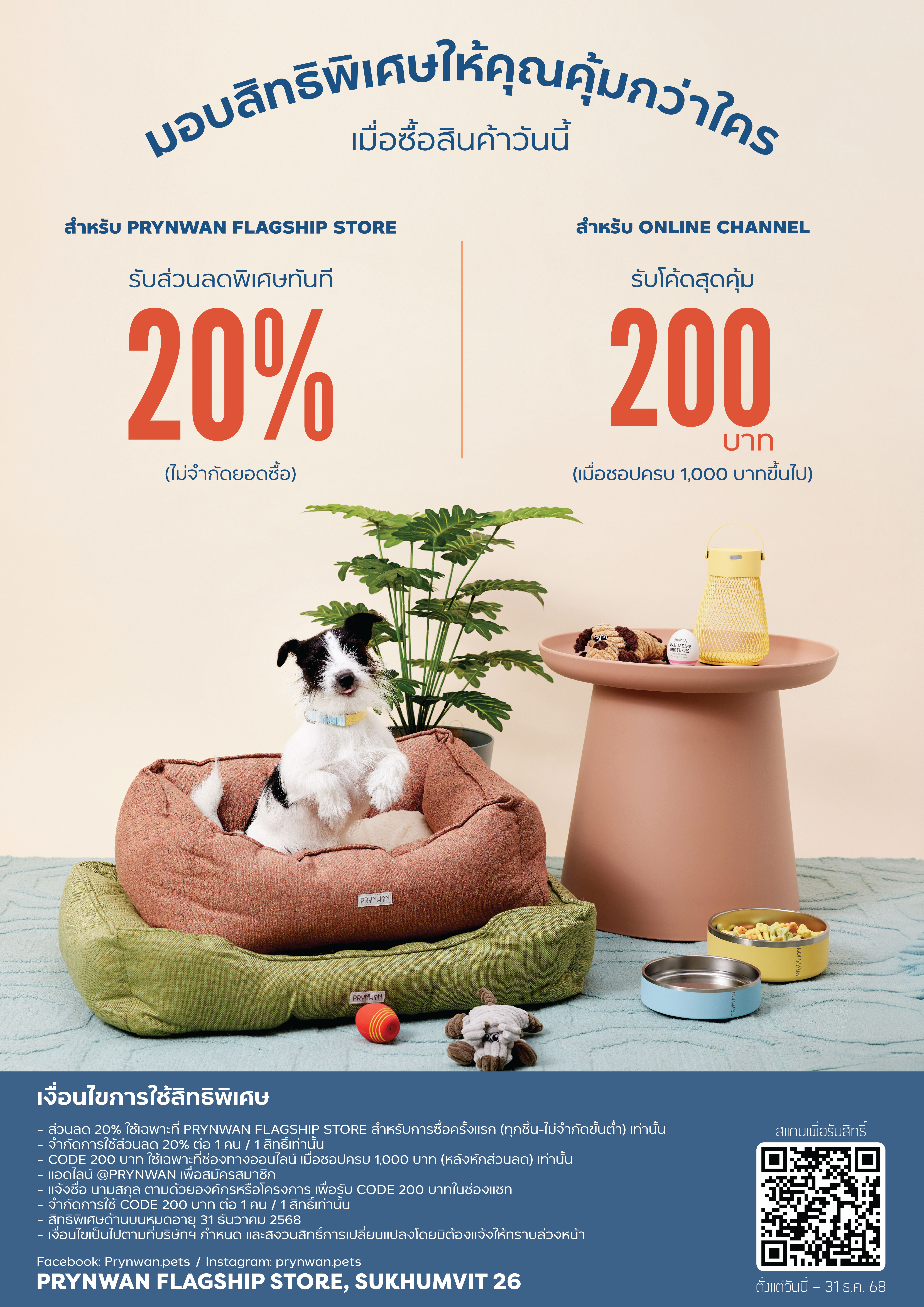 – ส่วนลด 200 บาท ใช้เฉพาะที่ Pets.Prynwan.Com เมื่อซื้อครบ 1,000 บาท (หลังหักส่วนลด) และจำกัดการใช้ส่วนลด 1 คน / 1 สิทธิ์เท่านั้น