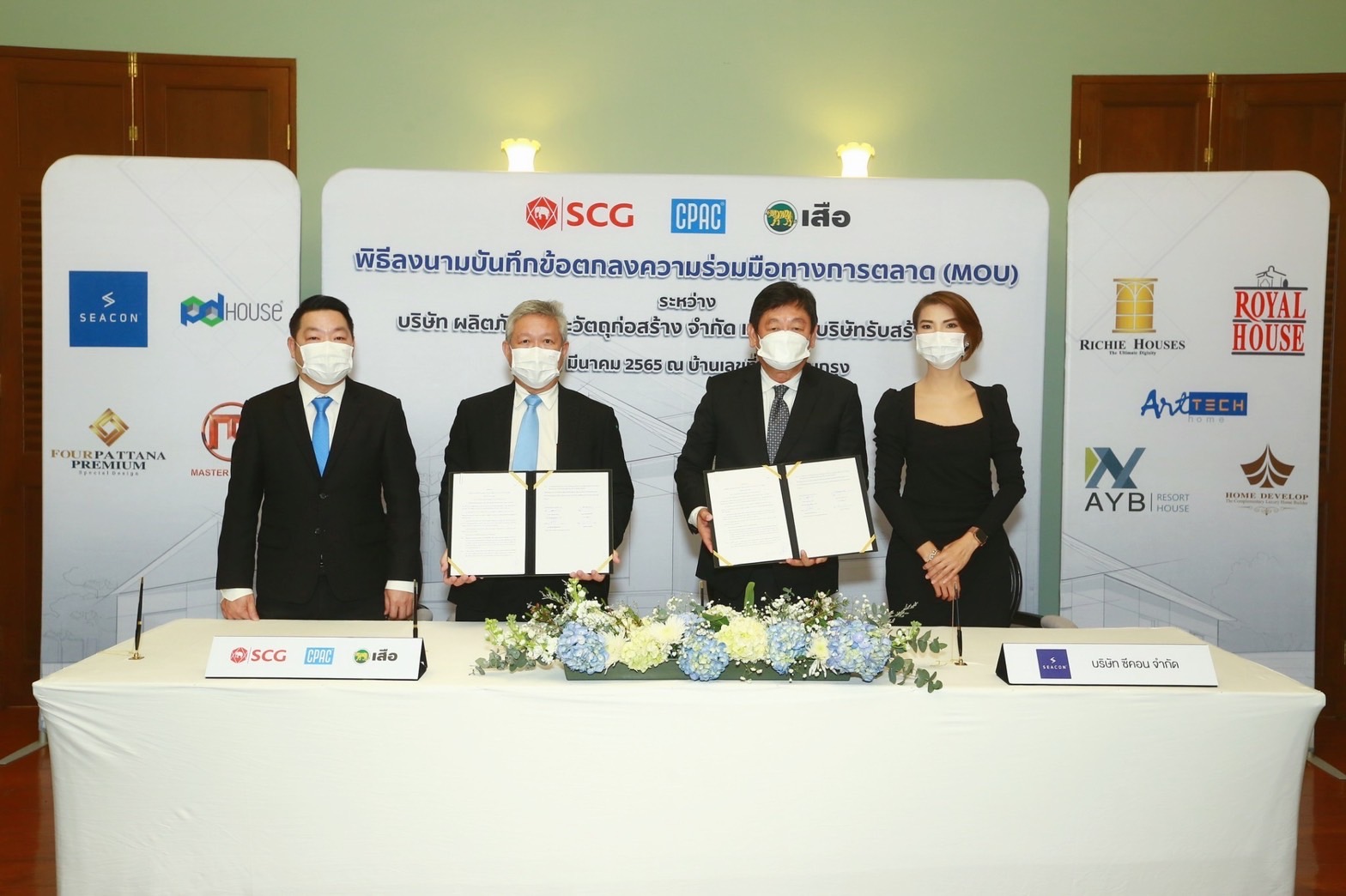 บริษัท ซีคอน จำกัด นำโดยคุณมนู ตระกูลวัฒนกิจ กรรมการผู้จัดการ และคุณจิรภา ถิระวัฒน์ ผู้จัดการฝ่ายการตลาด และจัดซื้อ ได้ร่วมทำพิธีลงนามบันทึกข้อตกลงกับทางบริษัท ผลิตภัณฑ์และวัตถุก่อสร้าง จำกัด โดยมีคุณสยามรัฐ สุทธานุกูล Chief Marketing Office พร้อมด้วยคุณเทียมชัย ศรีทรัพย์เจริญ Project Next Business Transformation Director ในการร่วมลงนาม เลือกใช้ ผลิตภัณฑ์ “เสือ กาวซีเมนต์” โดยให้ลูกค้าได้มั่นใจในการเลือกใช้สินค้าที่มีคุณภาพได้มาตรฐานงานปูกระเบื้อง พร้อมการันตีด้วยมาตรฐาน มอก. รายแรกของประเทศไทย