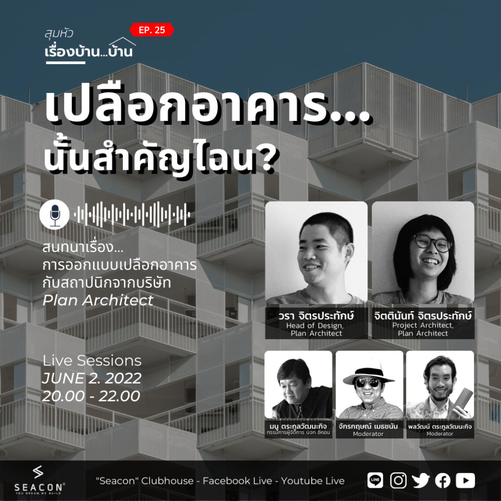 อาทิตย์นี้จะมาหาคำตอบว่า เปลือกอาคารคืออะไร มีไว้แค่สวยอย่างเดียวใช่หรือไม่ หากไม่ใช่เปลือกอาคานั้นมีประโยชน์อย่างไร มาร่วมกันสุมหัว หาคำตอบได้ ที่ “เปลือกอาคาร…นั้นสำคัญไฉน?” #สุมหัวเรื่องบ้าน…บ้าน